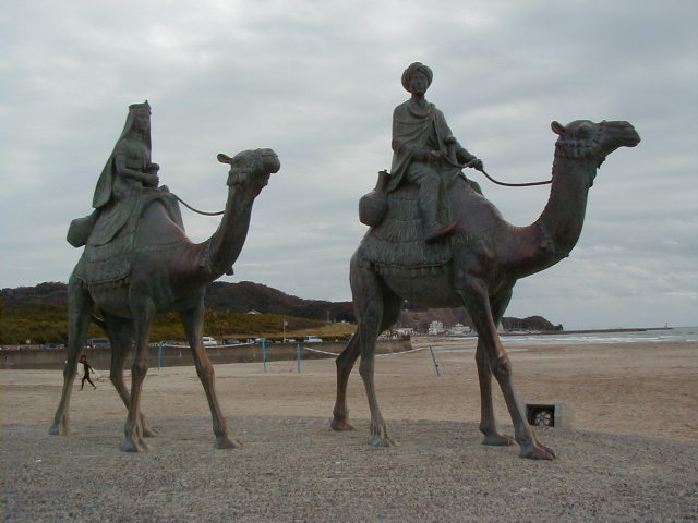 | 朝の気温12℃。 ライダーにとっては寒い季節となってきたが、 御宿の海にはサーファーがたくさんいた。(みんな若いなぁ…) 御宿の白浜は、「月の砂漠」で歌われているらしく、 写真がそのらくだである。(なんかの金属製) この付近では、ちょっと北に足をのばして、 九十九里道路(210円)がおすすめ。 海岸沿いの直線道路を爽快に走ることができる。 (写真:御宿−月の砂漠のらくだ) |