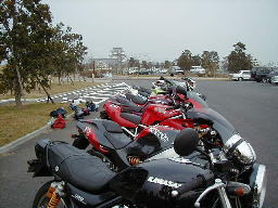 | 本日は日光方面に行く予定であったが、朝の天気を見て、 急遽、「佐野にラーメンを食べに行く」ツーリングとなった。 佐野には、2時間半ぐらいで到着。 (寒い時期のツーリングはこのぐらいがちょうどいいかな…) 佐野の手打ちラーメンで身体を温めてから、帰りに関宿城に寄る。 (写真の遠くに小さく見える城が関宿城。) 駐車場で写真撮影会の後、帰路に着く。 (写真:関宿城) |