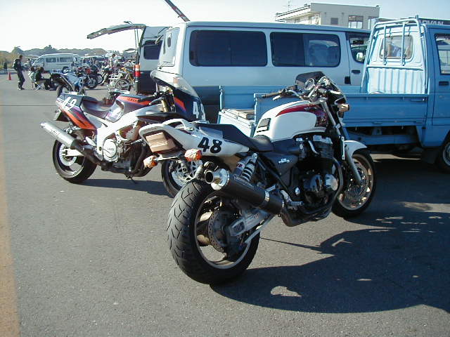 「200cc以上の公道車両として市販されている車両であれば、 排気量、改造は自由(但し、車両規則に従ったもの)」 と、なっています。まぁ、何でもありですね。 やはり、上位を占めるのは、NSRなどの2スト250ccのようです。 (リッターネイキッドには、ちとつらい。。。) ちなみに、スリックタイヤは禁止です。 【参加費用】 10000円。(走行会参加の場合は、プラス2500円) 【さて、結果は。。。】 予選タイムは、52秒くらい。78/79位。おそまつさまでした。 決勝は、亀さんクラスの後ろから2番目のグリッドからスタート。 1300ccのパワーにものを言わせて、スタートで5台くらい ごぼう抜きにして、あとは2台抜いて1台に抜かれて。。。 まぁ、初参加にしてはこんなものでしょう。 (タイヤもツーリング仕様だし) いやいや、今度は50秒切るよ。 |
