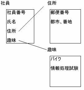 | 内部スキーマ | データの物理的な格納面からの定義。 ex.)インデックスの定義。ORACLEの表領域の定義。 |