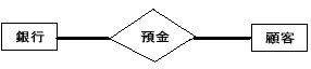預金は顧客と銀行の多対多の関係を1対多に変えるための連関エンティティであり、顧客と預金は1対多、銀行と預金は1対多の関係となる。